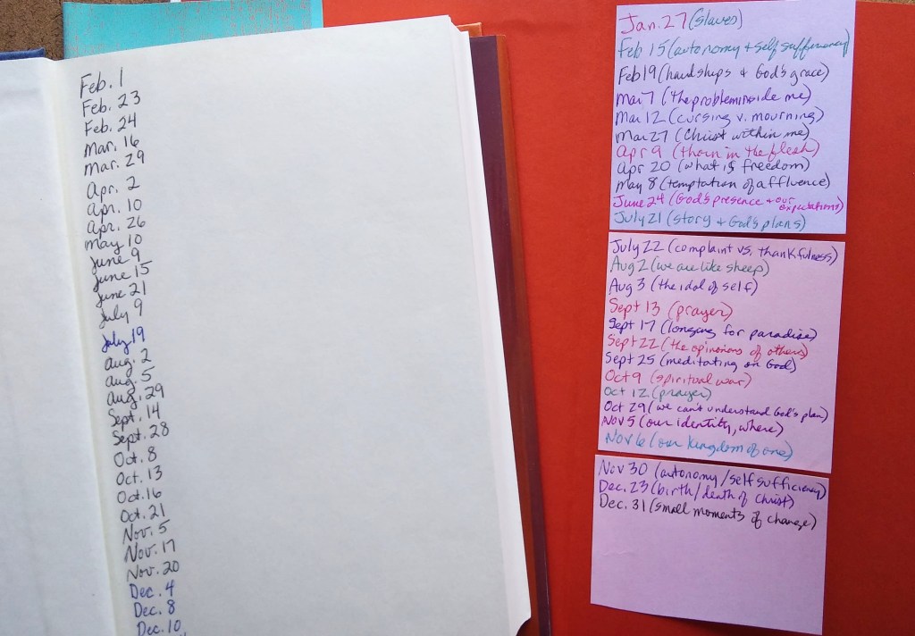 - Here’s a tip you may want to incorporate into your daily devotional reading: There will be some “days” (entries) that will resonate with you more than others. Some days the reading will be so particularly helpful that you’ll want to refer back to it … so on the title page, the inside cover or wherever is convenient, jot down the date of the entry that is so meaningful to you. In the future, you’ll be able to pick up this devotional and easily find and reread the entries you found most helpful. I’ve recently begun putting a few words of explanation after each date so I can use it to search for readings on certain topics (loss, God’s sovereignty, prayer, heaven, humility, etc.).